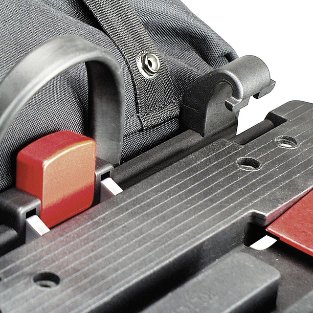 On the carrier adapter, this bag can be hung into the side slits by its black hooks, locked, and combined with boxes, baskets, or topcases. Since the GTA hooks sit flush with the GTA Adapter, a basket, topcase or box can be used simultaneously. To use the bag on carriers without GTA Adapterplate additional hooks with a blue twist lock are included.